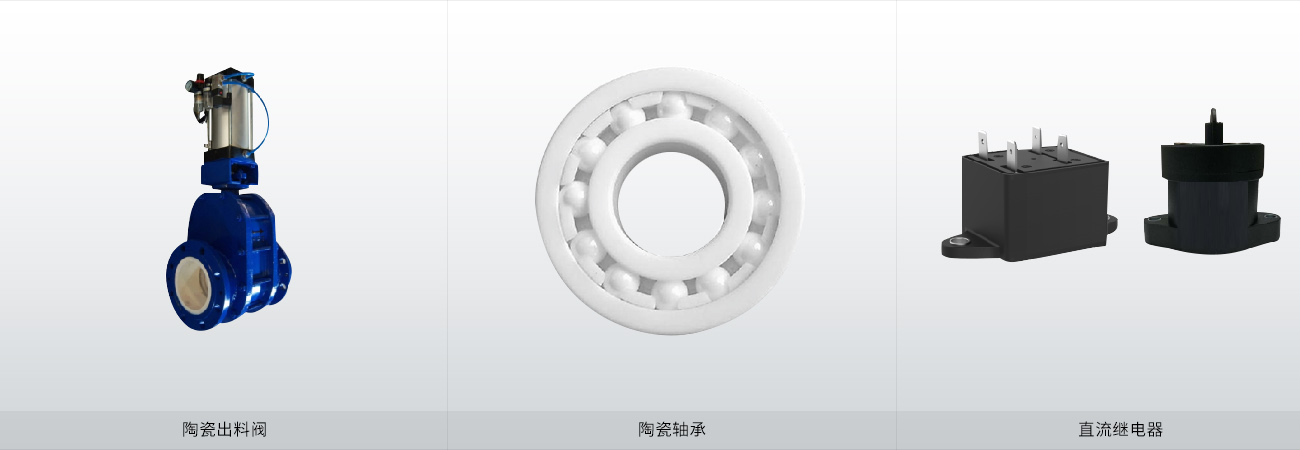 陶瓷套圈、陶瓷球、陶瓷閥門、陶瓷絕緣條、法蘭片、陶瓷滑塊、導塊等精密陶瓷結構件; 應用于石油、化工醫療器械、低溫工程、光學儀器、高速機床、高速電機、印刷機械、食品加工機械等領域。